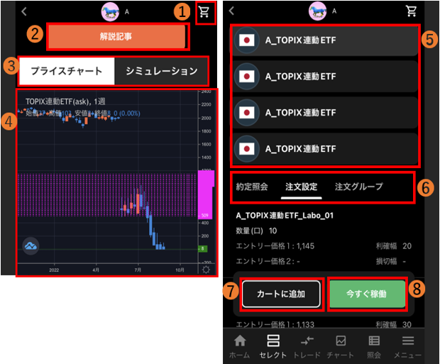 自動売買ロジックを作成できます。 - ②セレクト/シェア: