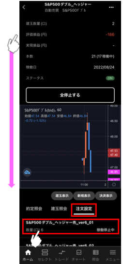 ※自動売買注文を手動で決済した場合、当該自動売買は稼働停止となります。