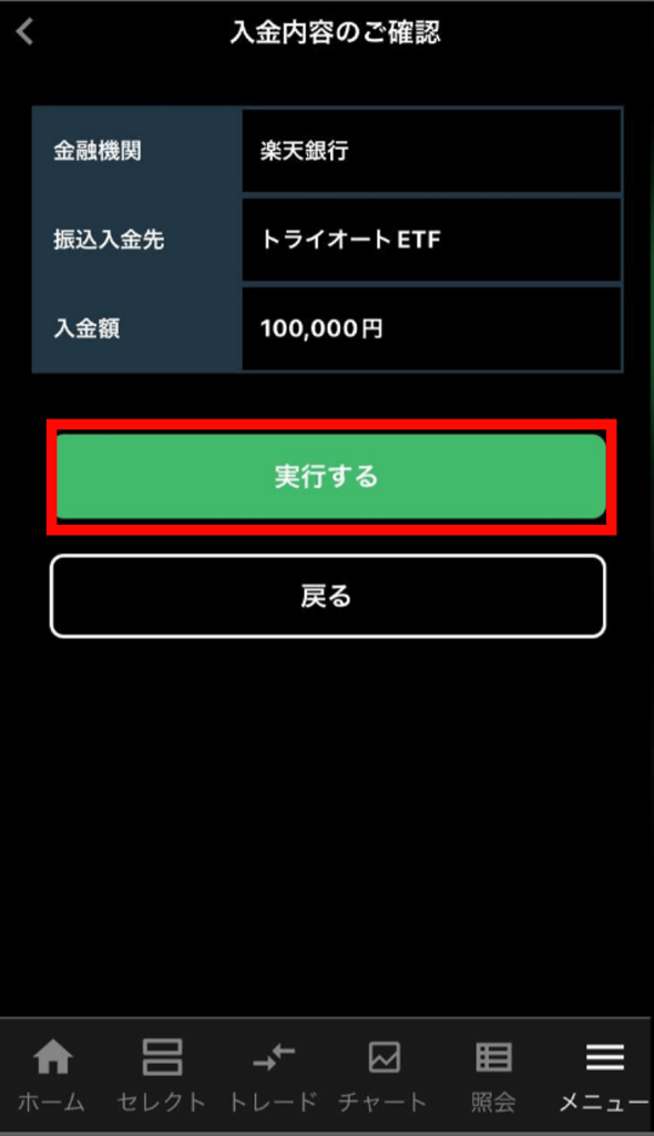※振込入金先が「トライオートETF」となっていることをご確認ください。