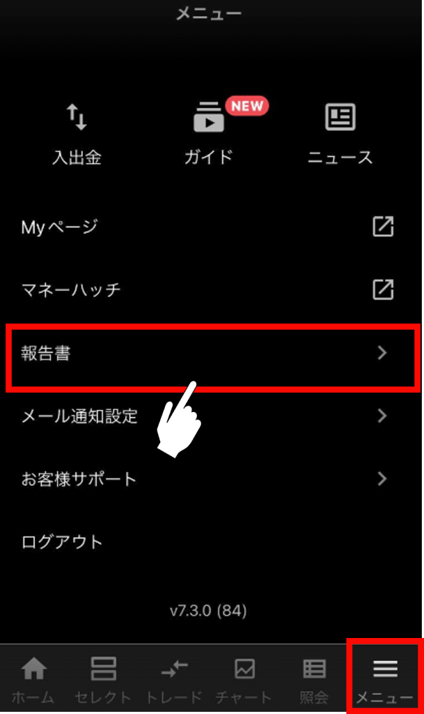 - ■日次報告書:1営業日毎の取引報告書兼取引残高報告書
