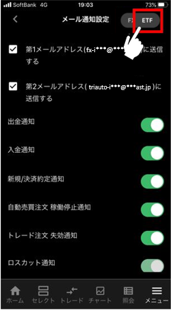 ※通知配信先はいずれか1つ選択する必要があります。(登録メールアドレスが1つの場合、選択不可)