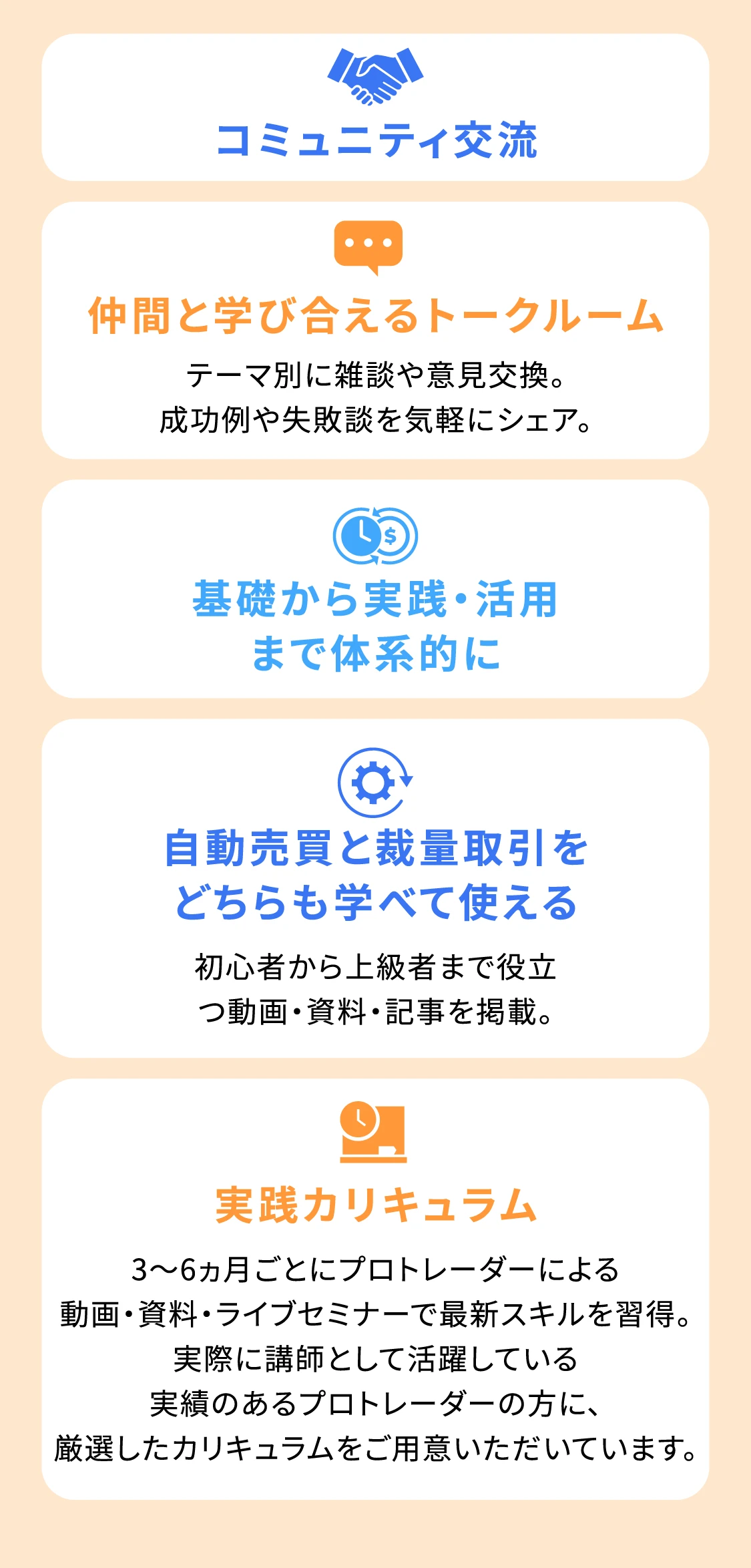 自動売買の解説コンテンツも、裁量取引に活用できる講義も両方あります。