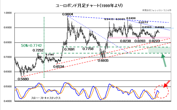 従って、ユーロポンド相場の月足をチェックしておきましょう。