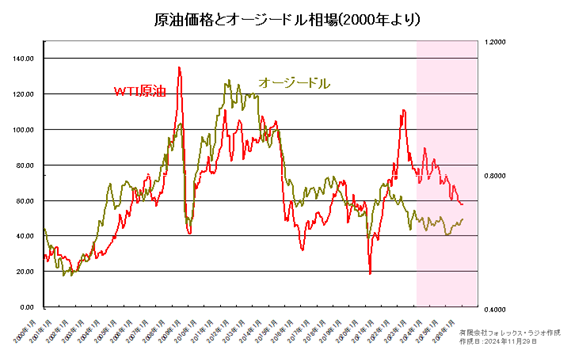 豪ドル相場は、資源国通貨ということもあって、資源価格と連動性が高い通貨です。