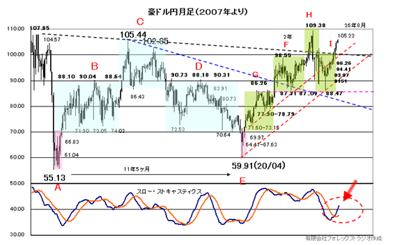 ③ドル円は、例年アノマリー的に、8月中旬に瞬間的な円高が示現することが多いことは注意です。ただ