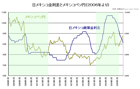 そうなると更に日墨金利差は5%程度まで拡大する可能性が高く、金利差の面からは、メキシコペソ円相場が、この上昇を維持出来るとは考えない方が良さそうです。