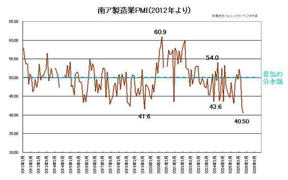 一方下記の南アの製造業PMIを見ると、現状は直近最下限の「40.5」まで低下しています。2026年の南アフリカの経済成長は緩やかな改善が予想されていますが、トランプ政権からの圧力や更なる制裁が想定されており、直近では少し警戒感を持った方が良さそうです。