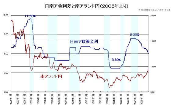 ただ、中国の対応が強固だったことから、米政権が対中関税を緩め、主要諸国もトランプの相互関税に対して、迎合的な態度を示したことから、株価が年初来安値圏から反転に転じたことなどから、南ア準備銀行が5月に0.25%、7月に0.25%の利下げを実施、トランプ政権が南アに30%の相互関税を課すも、リスク回避の動きに巻き戻しの動きが優勢となりました。
