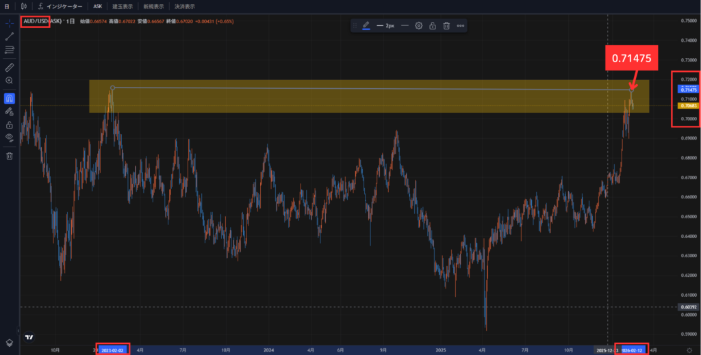 ※AUD/USDの2023~2026年現在のチャート画面