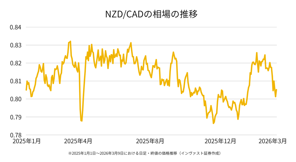 直近でも原油価格の上昇を背景にカナダドルが意識される局面があり、NZD/CADは0.80付近で推移するなど、値動きが出やすい状況となっています。